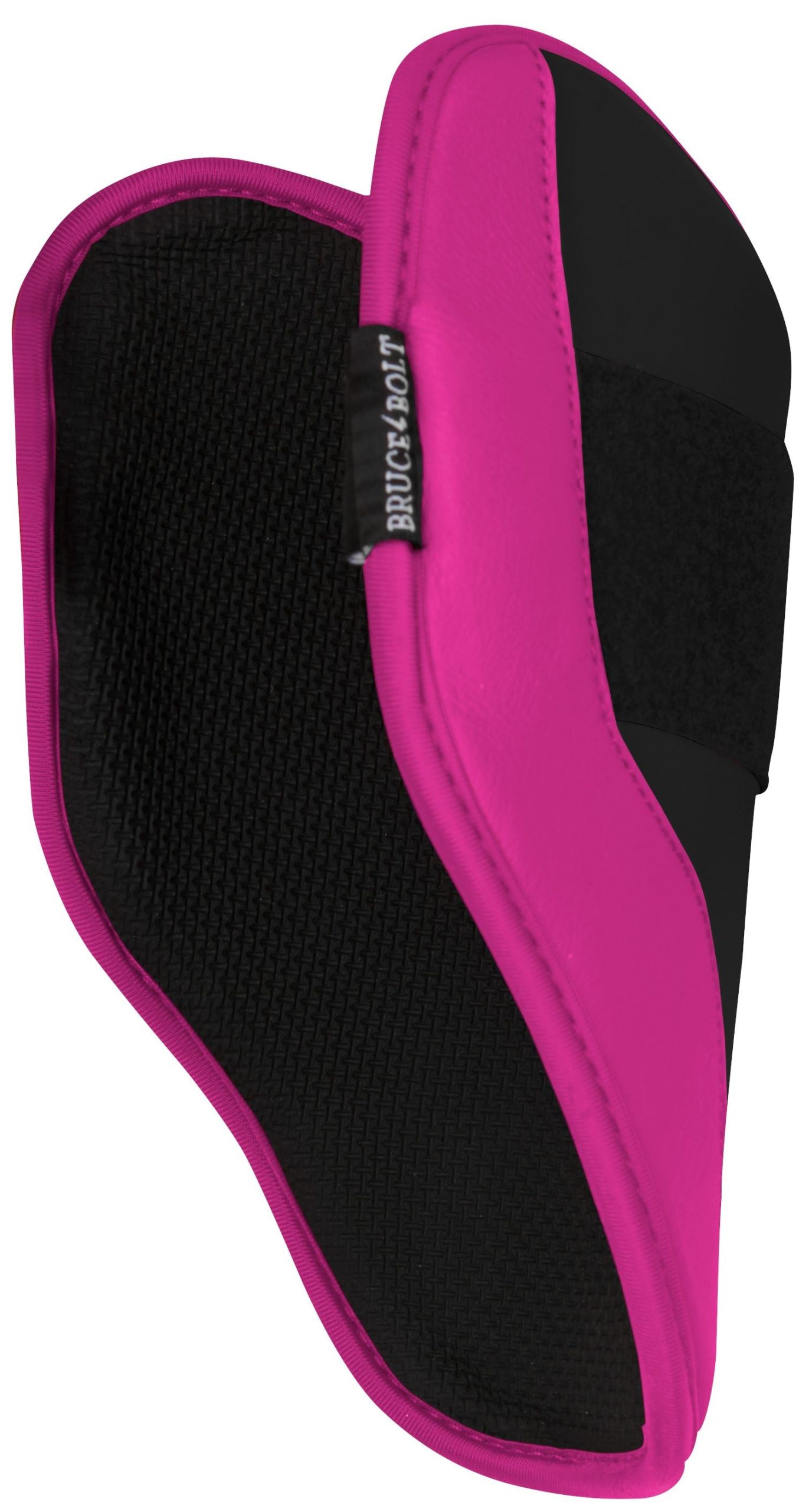 BRUCE BOLT’s PREMIUM PRO Elbow Guards feature a semi-moldable thermoplastic protective shell with a Cabretta leather outer and proprietary Sharkskin inner to prevent movement during the swing. 2 wide removable elastic strap locks the elbow guard in place providing maximum protection at the plate.