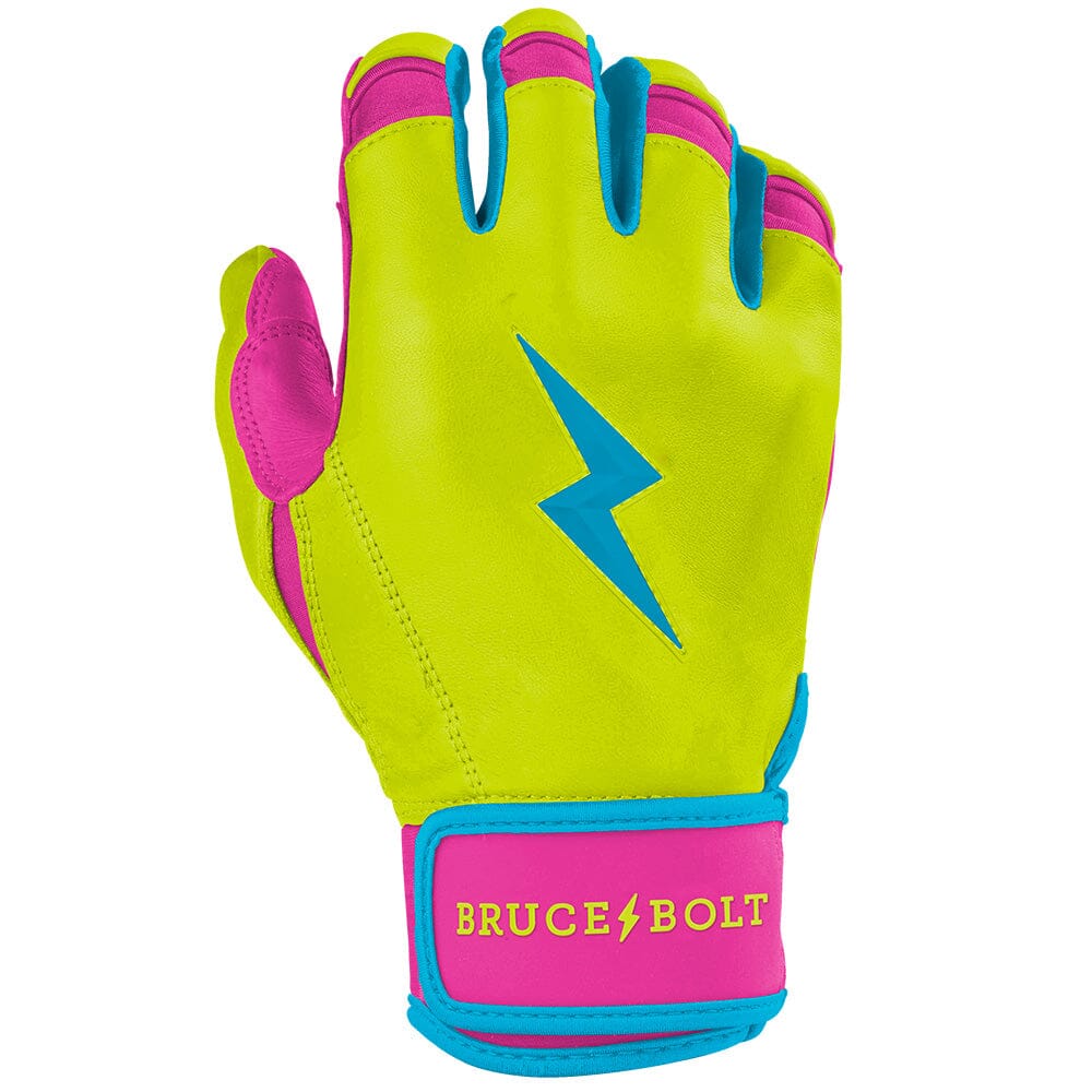 HIGHEST QUALITY. MOST DURABLE BATTING GLOVE IN BASEBALL AND SOFTBALL: Each pair of BRUCE BOLT batting gloves are handmade by skilled craftsmen using only the highest quality 0.9mm Cabretta leather and stitching techniques which makes our gloves buttery soft but more durable than any other glove on the market.