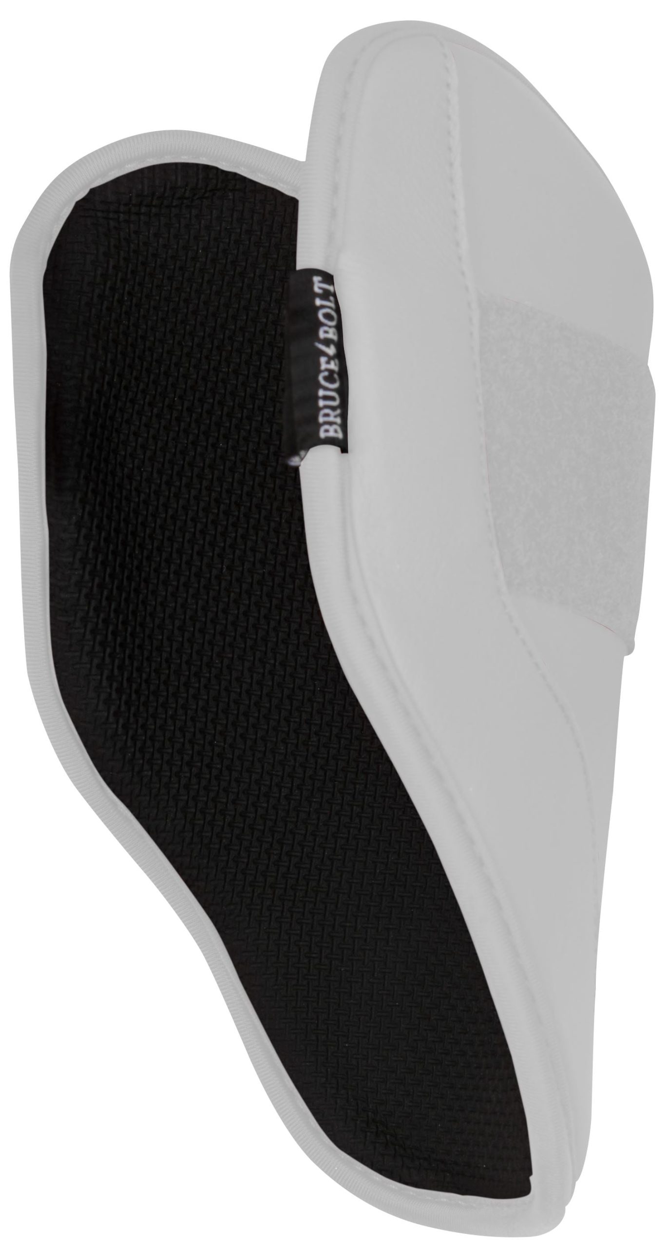 BRUCE BOLT’s PREMIUM PRO Elbow Guards feature a semi-moldable thermoplastic protective shell with a Cabretta leather outer and proprietary Sharkskin inner to prevent movement during the swing. ?2 wide removable elastic strap locks the elbow guard in place providing maximum protection at the plate.
