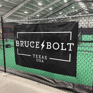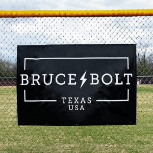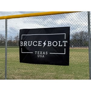 Show off your BRUCE BOLT pride with our premium 4′ x 6′ branded banner – make a bold statement wherever it hangs. Perfect for batting cages. dugouts. fences. gyms. or even your bedroom wall! This banner is made to last and designed to stand out.