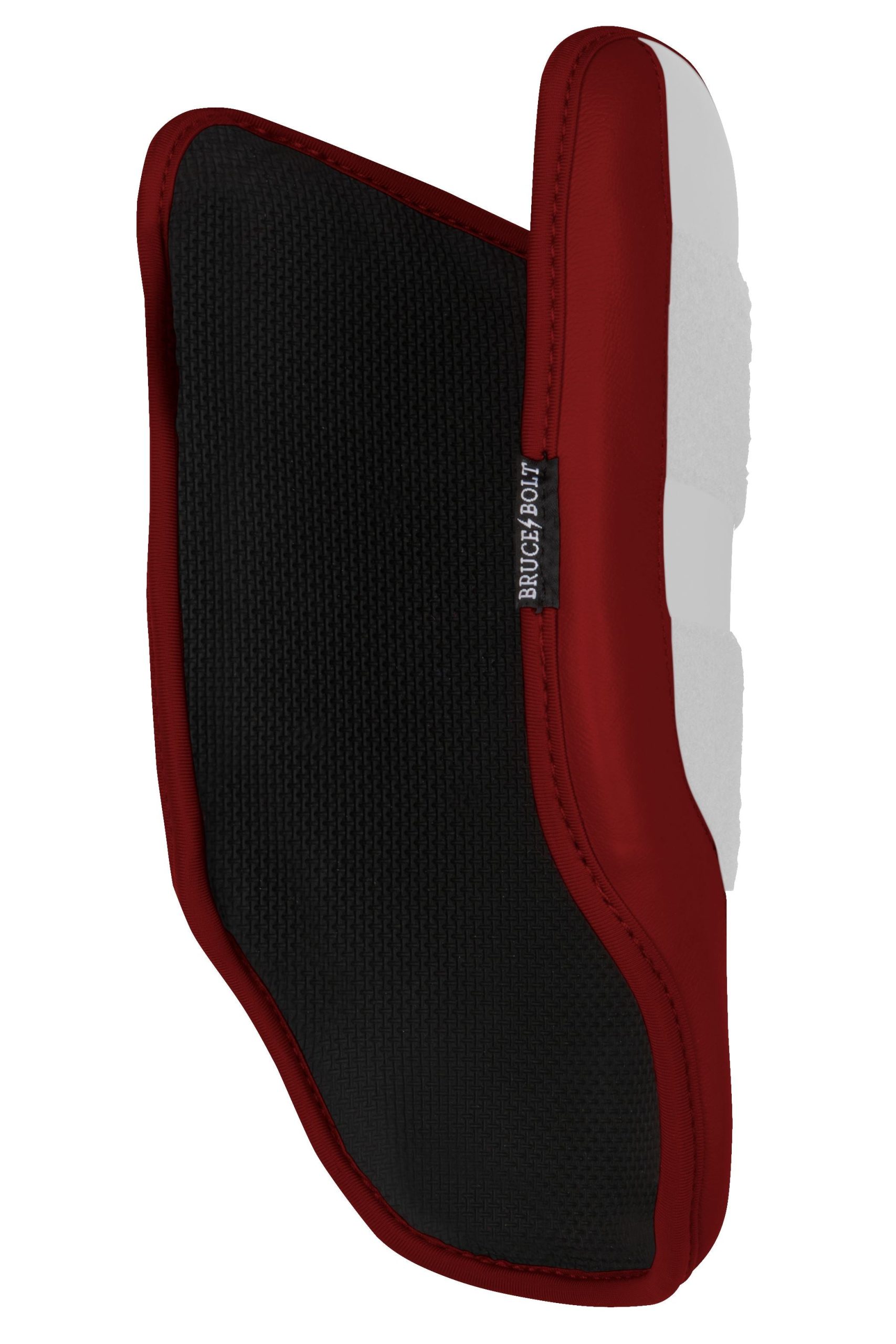BRUCE BOLT’s PREMIUM PRO Elbow Guards feature a semi-moldable thermoplastic protective shell with a Cabretta leather outer and proprietary Sharkskin inner to prevent movement during the swing. 2 wide removable elastic strap locks the elbow guard in place providing maximum protection at the plate.