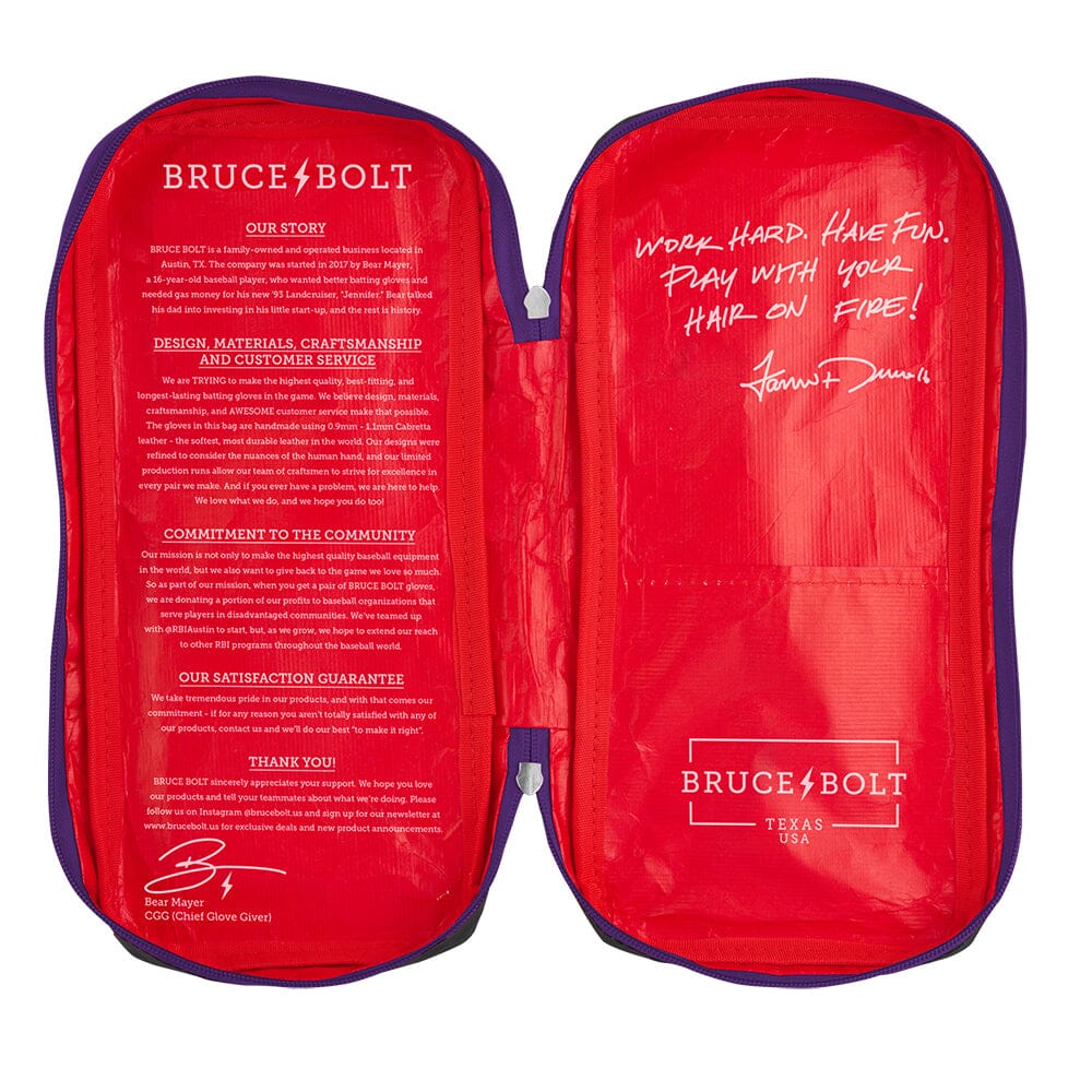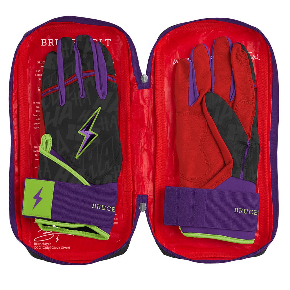 HIGHEST QUALITY. MOST DURABLE BATTING GLOVE IN BASEBALL: Each pair of BRUCE BOLT batting gloves is handmade by skilled craftsmen using only the highest quality 0.9mm Cabretta leather and stitching techniques. Our gloves are buttery soft. yet more durable than any other glove on the market.