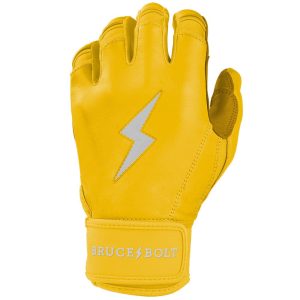 HIGHEST QUALITY. MOST DURABLE BATTING GLOVE IN BASEBALL: Each pair of BRUCE BOLT batting gloves are handmade by skilled craftsmen using only the highest quality 0.9mm Cabretta leather and stitching techniques which makes our gloves buttery soft but more durable than any other glove on the market.