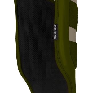BRUCE BOLT’s PREMIUM PRO Elbow Guards feature a semi-moldable thermoplastic protective shell with a Cabretta leather outer and proprietary Sharkskin inner to prevent movement during the swing. 2 wide removable elastic strap locks the elbow guard in place providing maximum protection at the plate.