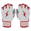 HIGHEST QUALITY. MOST DURABLE BATTING GLOVE IN BASEBALL: Each pair of BRUCE BOLT batting gloves are handmade by skilled craftsmen using only the highest quality 0.9mm Cabretta leather and stitching techniques which makes our gloves buttery soft but more durable than any other glove on the market.