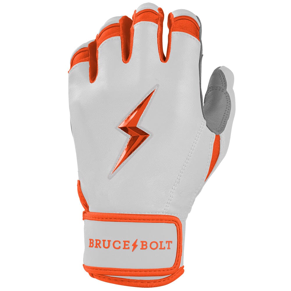 HIGHEST QUALITY. MOST DURABLE BATTING GLOVE IN BASEBALL: Each pair of BRUCE BOLT batting gloves are handmade by skilled craftsmen using only the highest quality 0.9mm Cabretta leather and stitching techniques which makes our gloves buttery soft but more durable than any other glove on the market.