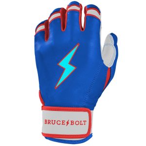 HIGHEST QUALITY. MOST DURABLE BATTING GLOVE IN BASEBALL AND SOFTBALL: Each pair of BRUCE BOLT batting gloves are handmade by skilled craftsmen using only the highest quality 0.9mm Cabretta leather and stitching techniques which makes our gloves buttery soft but more durable than any other glove on the market.