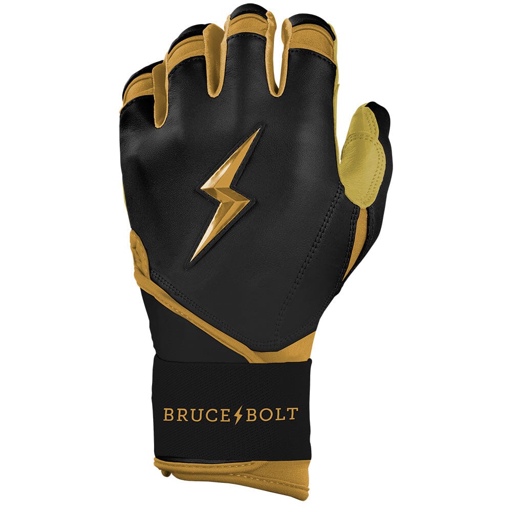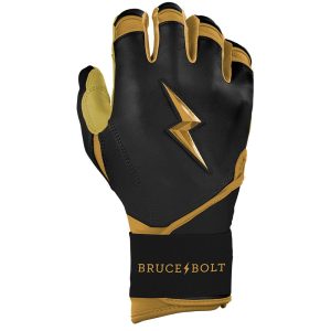 HIGHEST QUALITY. MOST DURABLE BATTING GLOVE IN BASEBALL: Each pair of BRUCE BOLT batting gloves are handmade by skilled craftsmen. Our GOLD Series gloves use 1.2mm Cabretta leather on the palm and the back of the glove which makes them buttery soft and more durable while providing better grip than any other glove on the market.