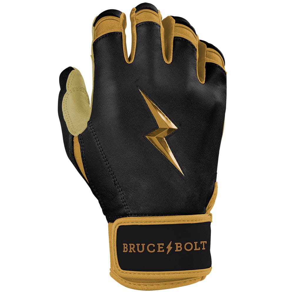 HIGHEST QUALITY. MOST DURABLE BATTING GLOVE IN BASEBALL: Each pair of BRUCE BOLT batting gloves are handmade by skilled craftsmen. Our GOLD Series gloves use 1.2mm Cabretta leather on the palm and the back of the glove which makes them buttery soft and more durable while providing better grip than any other glove on the market.