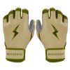 HIGHEST QUALITY. MOST DURABLE BATTING GLOVE IN BASEBALL: Each pair of BRUCE BOLT batting gloves are handmade by skilled craftsmen using only the highest quality 0.9mm Cabretta leather and stitching techniques which makes our gloves buttery soft but more durable than any other glove on the market.