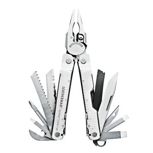 The award-winning. Leatherman Super Tool 300 is made for getting hard work done. This multi-tool’s large pliers are among the strongest we’ve ever produced. Not only are these pliers capable. but the sloped-top handle design lets you maneuver them further into tight spaces. Large cutouts in the handles make it easy to open tool features. even with gloves on. The rolled handles make for a comfortable grip. perfect for daily use. Stranded. hard and regular wire cutters all come standard on Super Tool 300. And because they’re removable. you can repair or re-sharpen on the spot. Equipped with 19 durable tools. it’s ready to tackle your toughest jobs. Sheath sold separately.
