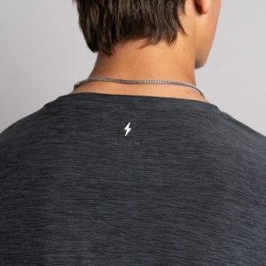Our graphic tees are subtle with either a tonal BOLT logo or BRUCE BOLT wordmark on the chest and small 3D silicone BOLT on the back of the neck.